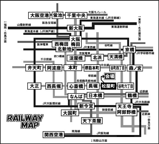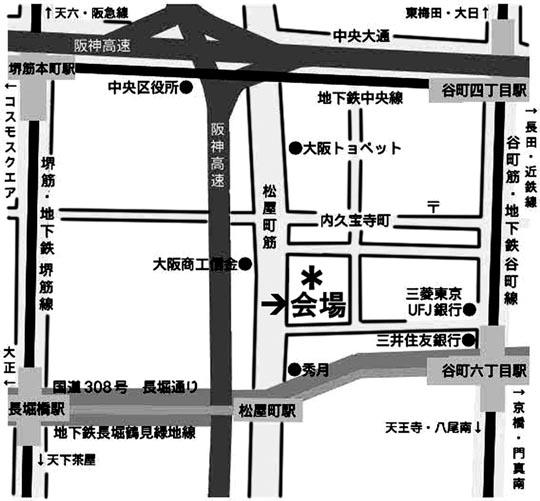 ■会場至近の停留所は「松屋町」です大阪市内からご参加の、時間に余裕のある方向けですが、「松屋町」停留所を経由する路線は、105号系統・85号系統と赤バスの中央ループの計3系統になります。詳しくは大阪市交通局サイトや各営業所などへおたずねください。